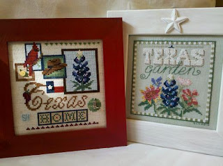 I also did some framing. This first piece has been framed for a while but I hadn't photographed it. It's an out of print design from Redbird Designs called Texas Home. The chart was graciously loaned to me by Sandi in Texas. The frame is Mill Hill.