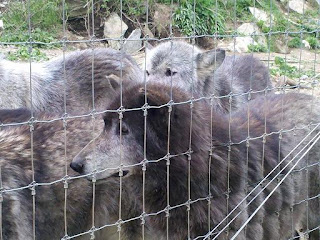 Mr. Wonderful and I just visited the Wolf Sanctuary of PA. What an experience. They currently have 44 wolves, divided into packs and housed in large woodland enclosures. We spent 2 1/2 hours with a guide, visiting the packs and hearing stories about their histories and behavior. It was fascinating and well worth the trip. The highlight was when the guide coaxed the pack into howling and the other packs joined in. Beautiful and slightly bone-chilling at the same time. Here are a few pictures of these magnificent animals. We hope to return in the winter to see them when they are at their peak weight and in full coat.